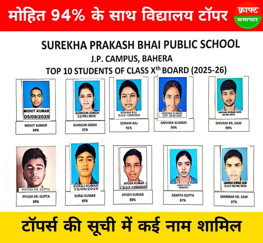 सीबीएसई 10वीं रिजल्ट: सुरेखा प्रकाश भाई पब्लिक स्कूल का रिजल्ट रहा शानदार, 94% लाकर मोहित बने विद्यालय टॉपर