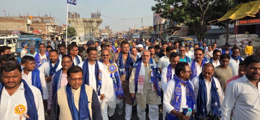 चौपारण (हजारीबाग)। भारत रत्न डॉ. भीमराव अम्बेडकर की 135वीं जयंती बुधवार को प्रखंड क्षेत्र में हर्षोल्लास और उत्साह के साथ मनाई गई। इस अवसर पर अम्बेडकर विचारधारा मंच के तत्वावधान में भव्य शोभायात्रा निकाली गई, जिसमें बड़ी संख्या में लोगों की भीड़ उमड़ पड़ी। कार्यक्रम का विधिवत उद्घाटन मुख्य अतिथियों ने बाबा साहेब की प्रतिमा पर दीप प्रज्वलित और पुष्पांजलि अर्पित कर किया। मौके पर सांसद मनीष जायसवाल, विधायक मनोज कुमार यादव, कांके विधायक सुरेश बैठा, आयकर आयुक्त निशा उरांव, पूर्व एमएलसी प्रवीण सिंह, भाजपा नेत्री गीता हाजरा, जिप सदस्य राकेश रंजन और समाजसेवी हरिश्चंद्र सिंह समेत कई गणमान्य लोग मौजूद रहे। मंच के अध्यक्ष रामस्वरूप पासवान, सचिव प्रो. बिराज रविदास एवं मुखिया संघ अध्यक्ष बिरेंद्र रजक ने अतिथियों का स्वागत किया।