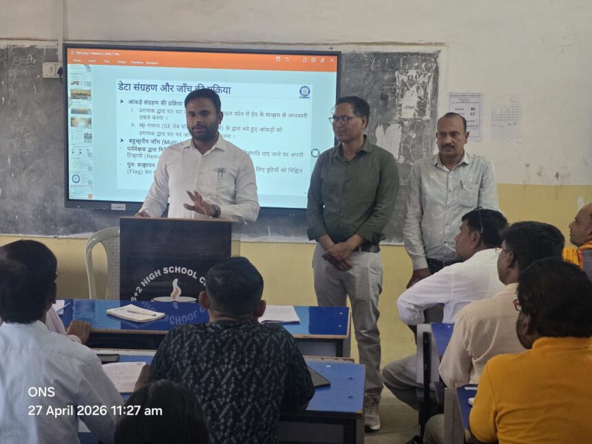 चौपारण (हजारीबाग)। प्रखंड विकास पदाधिकारी नितेश भास्कर की देखरेख में सोमवार को केबीएसएस प्लस टू हाई स्कूल चौपारण में जनगणना 2027 के तहत प्रतिनियुक्त पर्यवेक्षकों एवं प्रगणकों के प्रशिक्षण कार्यक्रम की शुरुआत की गई। प्रशिक्षण में जनगणना कार्य को सफलतापूर्वक संपन्न कराने को लेकर विस्तृत जानकारी दी गई। प्रखंड विकास पदाधिकारी ने बताया कि जनगणना 2027 के प्रथम चरण के अंतर्गत आगामी 16 मई से 14 जून तक मकान सूचीकरण का कार्य प्रारंभ किया जाएगा। इस कार्य के लिए नियुक्त सभी प्रगणकों एवं पर्यवेक्षकों के पहले बैच का प्रशिक्षण सोमवार से शुरू हुआ। उन्होंने बताया कि केबीएसएस चौपारण में कुल आठ बैचों में प्रशिक्षण आयोजित किया जाएगा। प्रत्येक बैच को तीन-तीन दिनों का प्रशिक्षण दिया जाएगा। पूरे कार्यक्रम के लिए कुल नौ दिनों का प्रशिक्षण निर्धारित किया गया है। प्रशिक्षण के दौरान 16 मई से शुरू होने वाले मकान सूचीकरण कार्य को डिजिटल माध्यम से किस प्रकार संपन्न किया जाएगा, इसकी विस्तृत जानकारी दी गई। प्रखंड में जनगणना कार्य के लिए कुल 332 प्रगणक एवं 54 पर्यवेक्षक प्रतिनियुक्त किए गए हैं। मौके पर प्रखंड विकास पदाधिकारी नितेश भास्कर, प्रखंड सांख्यिकी पर्यवेक्षक अनिल राणा, प्रशिक्षक जनार्दन प्रसाद वर्मा, मो. कैसर आलम, सुरेंद्र कुमार दास, कमलेश कुमार कमल, मनोज कुमार रवि, राजा राम रवि सहित बड़ी संख्या में प्रगणक एवं पर्यवेक्षक उपस्थित थे।