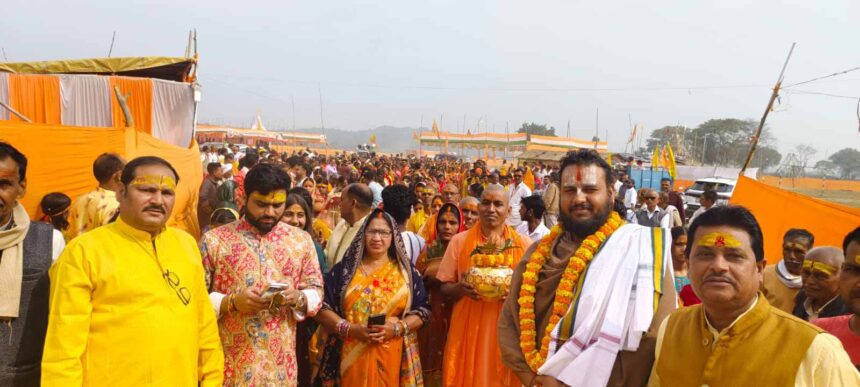 पांडू,पलामू। जिले के पांडू प्रखंड अंतर्गत महुगांवा पंचायत के ग्राम काती में देवी मंदिर व महाबीर मंदिर में देवी-देवताओं की प्राण-प्रतिष्ठा को लेकर सोमवार को पांच दिवसीय शतचंडी महायज्ञ का शुभारंभ भव्य शोभायात्रा एवं जल यात्रा के साथ हुआ। यज्ञस्थल से शुरू हुई मंगल शोभायात्रा पांडू बाजार होते हुए करमडीह गांव स्थित बांकी व ढोढरी नदी के संगम तट पर पहुंची, जहां 521कलश में मंत्रोच्चारण के साथ जल भरकर यज्ञशाला में कलश स्थापना की गई।यज्ञाचार्य पंडित दिनेश शुक्ल एवं आचार्य अभिषेक शास्त्री के मार्गदर्शन में पति-पत्नी द्वारा अग्नि मंथन कर विधिवत यज्ञ आरंभ किया गया। गाजे-बाजे, झंडे-पताकों और “जय श्रीराम” के जयघोष से क्षेत्र भक्तिमय हो उठा।मुख्य जजमान गोपाल सिंह एवं उनकी धर्मपत्नी नीलम देवी रहे।यज्ञ समिति के अध्यक्ष देव प्रसाद सिंह एवं पूर्व शिक्षक दयानंद सिंह ने बताया कि लगभग 50 वालंटियर यज्ञ संचालन, सत्कार, भोजन एवं प्रसाद वितरण में सहयोग कर रहे हैं। इस अवसर पर श्री श्री 1008 तपोमूर्ति संत श्री सुंदर राज अधिराज स्वामी जी महाराज सहित संतों के सान्निध्य में श्रद्धालुओं ने परिक्रमा कर प्रवचन सुने।शोभायात्रा में जिला परिषद सदस्य मीना देवी,सांसद प्रतिनिधि कृष्णविजय सिंह, विधायक प्रतिनिधि देवेंद्र उर्फ मुन्ना सिंह,देव प्रसाद सिंह, दयानंद सिंह, अवधेश सिंह, अरविंद सिंह, रणजीत सिंह, शेखर सिंह, लाभेंद्र सिंह, राजेश्वर विश्वकर्मा, मिथिलेश चंद्रवंशी, कुंडल सिंह, अरविन्द सिंह,पृथ्वी प्रजापति सहित सैकड़ों श्रद्धालु व कन्याएं शामिल हुईं।पांच दिवसीय यज्ञ में रामकथा व भागवत कथा का आयोजन होगा। सात फरवरी को विशाल भंडारे के साथ यज्ञ की पूर्णाहुति एवं प्राण-प्रतिष्ठा संपन्न की जाएगी।